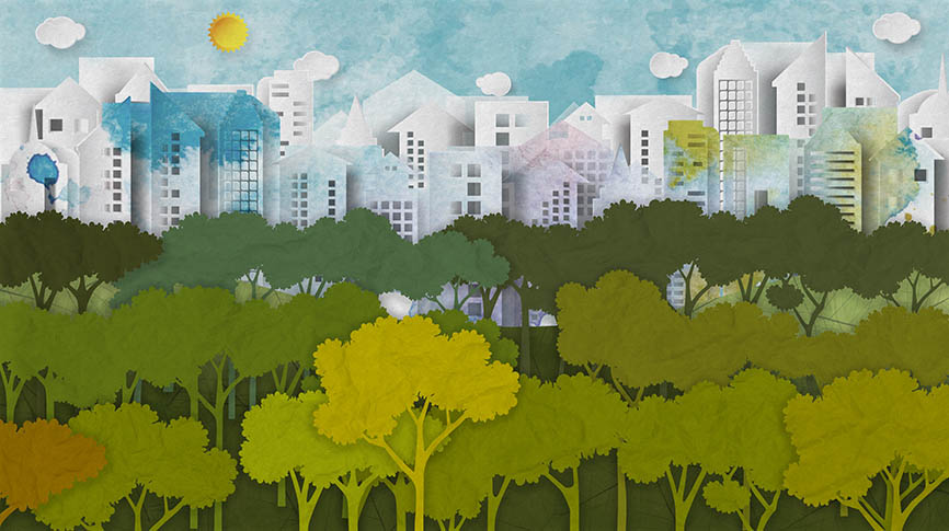 - Рисунок: Город, Деревья